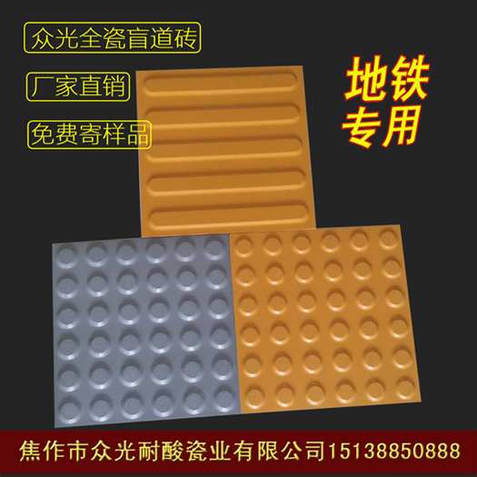 瓷質(zhì)盲道磚制造商焦作市眾光耐酸瓷業(yè)有限公司,生產(chǎn)制造的瓷質(zhì)盲道磚系列已被國(guó)家指定為地鐵高鐵站臺(tái)專(zhuān)用盲道磚鋪貼產(chǎn)品。眾光瓷業(yè)在短短幾年內(nèi)已成為國(guó)內(nèi)瓷質(zhì)盲道磚生產(chǎn)制造及銷(xiāo)售商,為什么眾光瓷質(zhì)盲道磚這么大受?chē)?guó)內(nèi)大小高鐵地鐵站臺(tái)的歡迎呢?原因不置可否,那就是出眾的品質(zhì),俗話說(shuō)人有人品,磚也有磚品,此話一點(diǎn)都不假,眾光瓷質(zhì)盲道磚就是憑借無(wú)可挑剔的品質(zhì)來(lái)立穩(wěn)腳跟、穩(wěn)占市場(chǎng)。